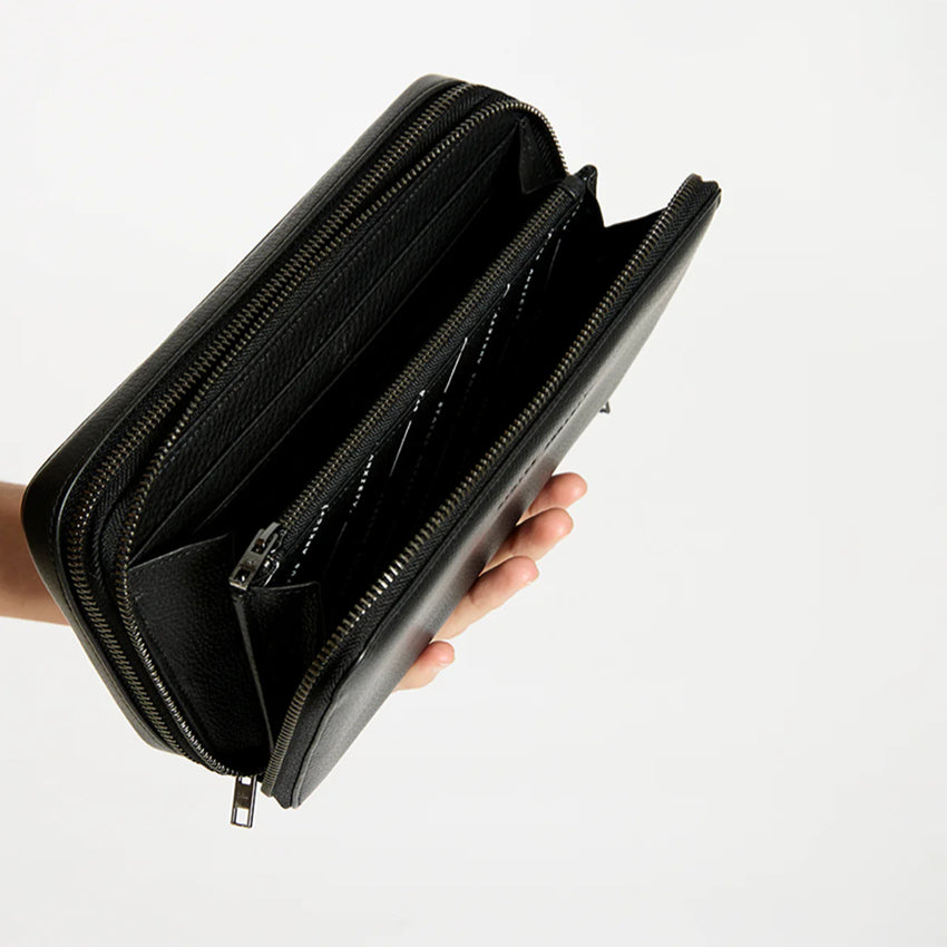 - Internal zipper pocket, slider pockets, full note slot and 8 card slots